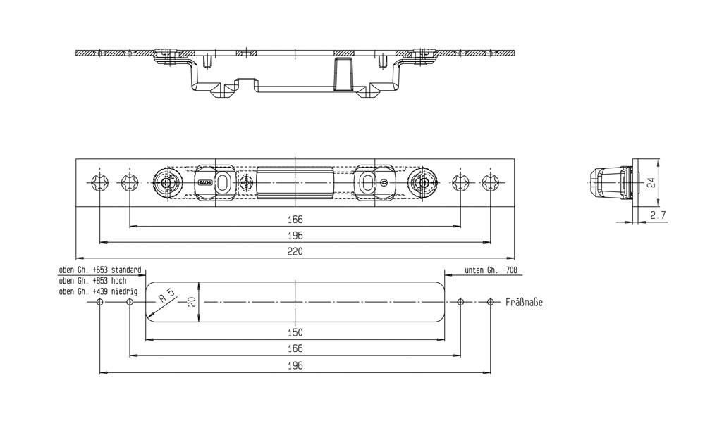für Mehrfachverriegelung 855 GL · passend für Kunststoff- / Aluminiumfenster / -Türen · Flachstulp
