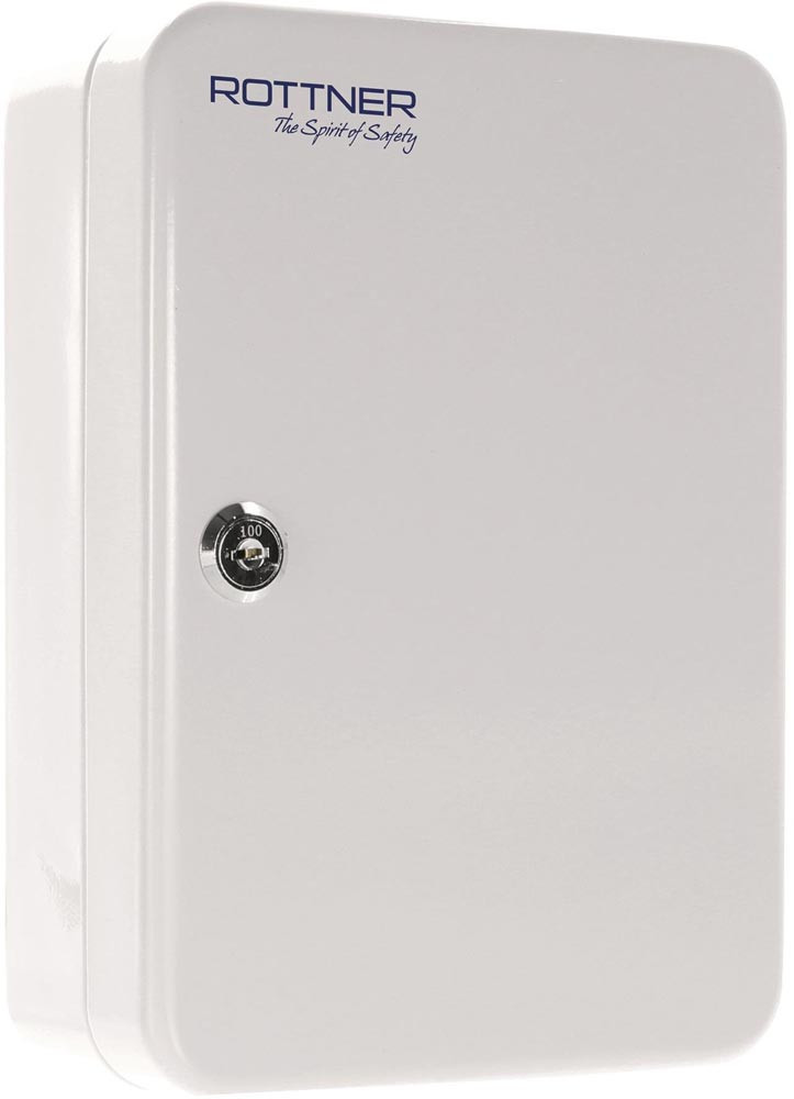 Gehäuse und Tür aus Stahlblech · zur Aufbewahrung von 30 Schlüsseln · 6 Hakenleisten mit jeweils 5 Haken, im Rastersystem beliebig verstellbar, durchnummeriert, farbige Etiketten · Zylinderschloss mit 2 Schlüsseln · zur Wandmontage inkl. Befestigungsmaterial