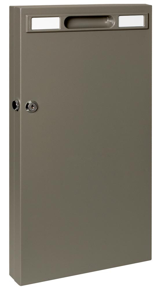 ∙ Aus Stahlblech · Drehriegel-Zylinderschloss mit 2 Schlüsseln · Nummerierte Haken (Schlüsselanhänger nicht im Lieferumfang enthalten) · Inkl. Befestigungsmaterial