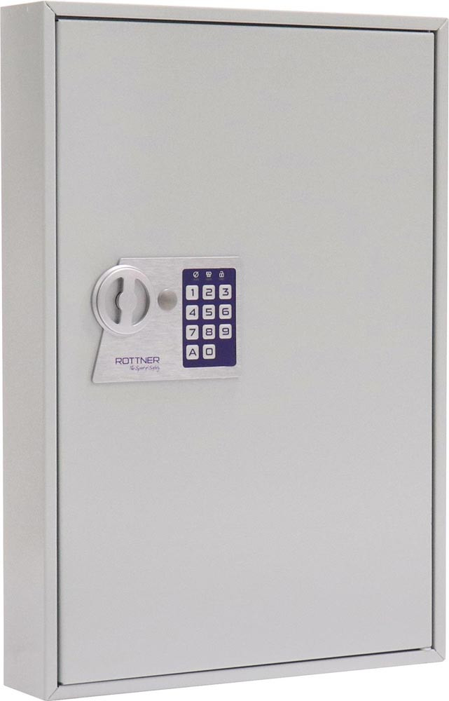 für 300 Schlüssel · batteriebetriebenes Elektronikschloss (ohne Batterien) · mechanische Notöffnung durch Schlüssel möglich, zweifach · verstellbare Haken, schwenkbares Register · 300 Schlüsselanhänger gratis