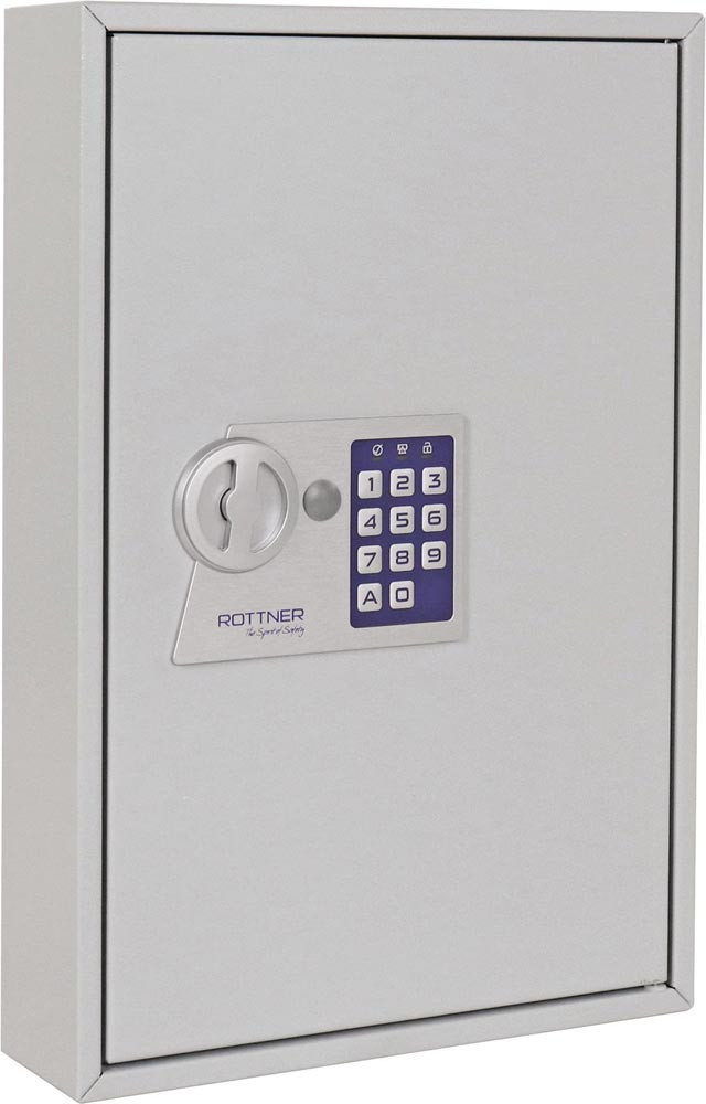 für 64 Schlüssel · batteriebetriebenes Elektronikschloss (ohne Batterien) · mechanische Notöffnung durch Schlüssel möglich, zweifach · inkl. Montagematerial · 64 Schlüsselanhänger gratis