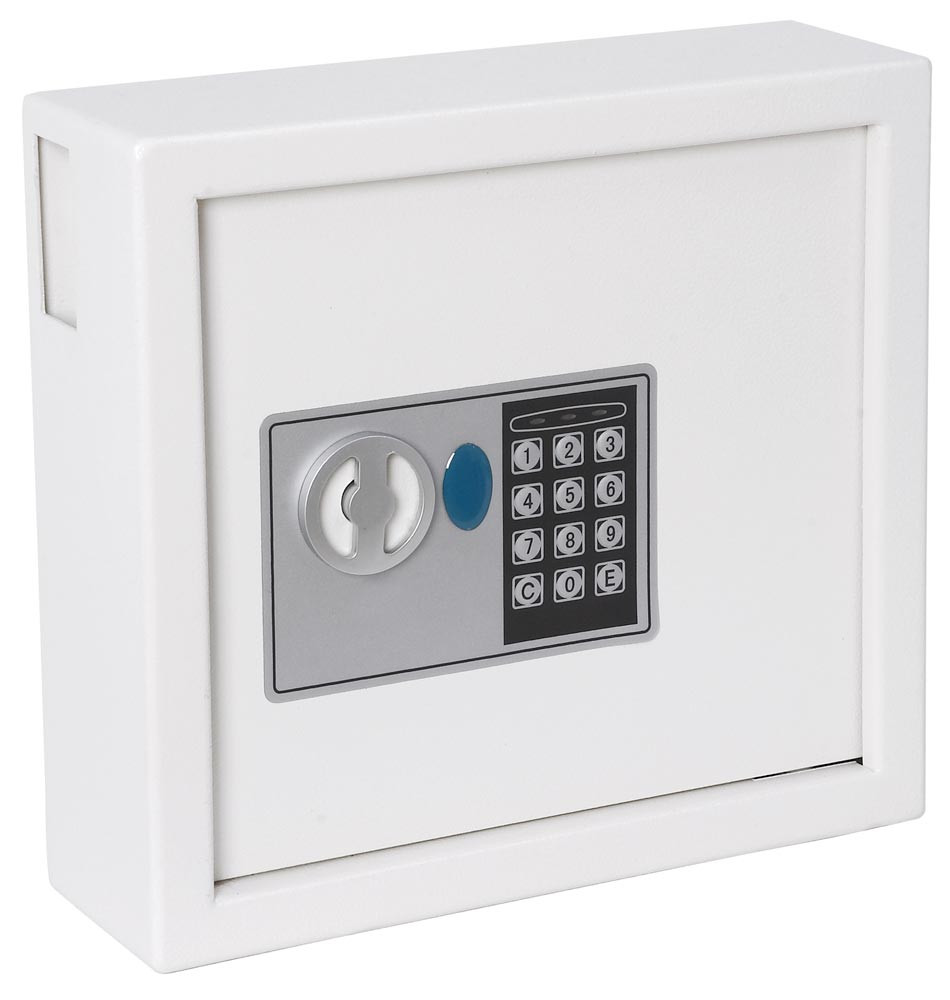 Schlüsseltresor, 30 Haken, BxTxH 300x100x280 mm, elektr. Tastenschloss, RAL 9003 signalweiß