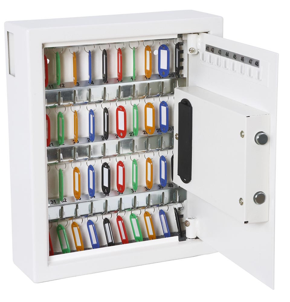Schlüsseltresor, 48 Haken, BxTxH 300x100x360 mm, elektr. Tastenschloss, RAL 9003 signalweiß