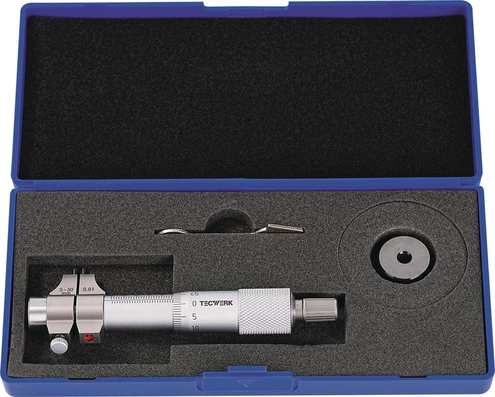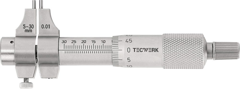 mit Gefühlsratsche · mattverchromt · Spindel gehärtet · Messflächen gehärtet · mit Einstellring bis Messbereich 50 mm · Steigung 0,5 mm