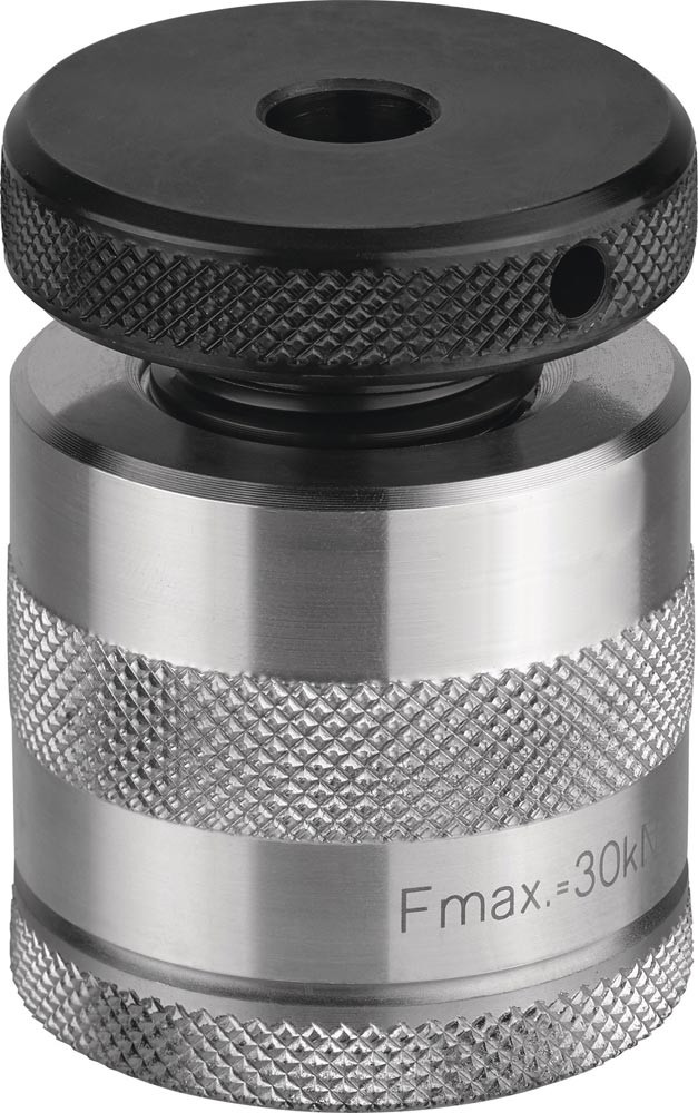mit Magnetfuß · Spindel: Vergütungsstahl brüniert · Trapezgewinde selbsthemmend, mit Endsicherung · Unterteil: Aluminium 400 N/mm² Zugfestigkeit · mit dem Permanent-Magnet kann die exakte Positionierung des Werkstückes in vertikaler Stellung erreicht werden