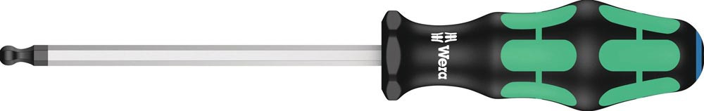 mit 2-Komponenten-Griff · Klinge aus Molybdän-Vanadium-Stahl nicromatt mit Black Point Spitze und Kugelkopf · (ermöglicht das Schrauben bis zu einem Winkel von 20°) · Größenleitsystem · Take it easy Toolfinder System