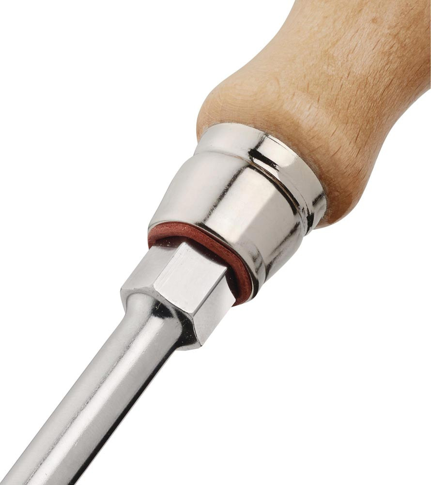 mit Holzgriff · Klinge aus hochvergütetem Spezialstahl · Schlüsselhilfe · glanzverchromt · mit Lederkappe · Spitze brüniert · für Schrauben mit Kreuzschlitz (PZD)