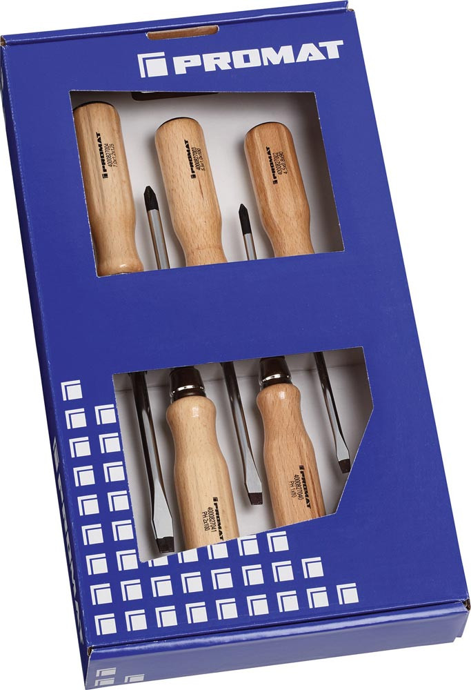 Schraubendrehersatz 5-teilig Schlitz / PH Holzgriff Rundklinge mit 6-Kant-Ansatz