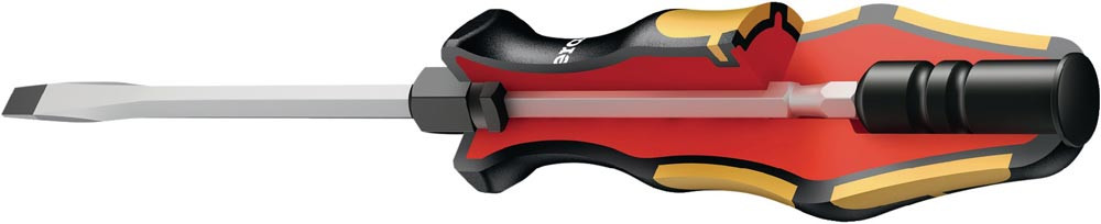 zum Schrauben, Meißeln und Stemmen · mit Mehrkomponenten-Kraftform-Griffen mit Abrollschutz · durchgehende 6kant-Klingen · Schlagkappne · Sechskantansatz für Schraubenschlüssel (ab 4,5 mm) · nicromatt, BlackPoint-Spitze