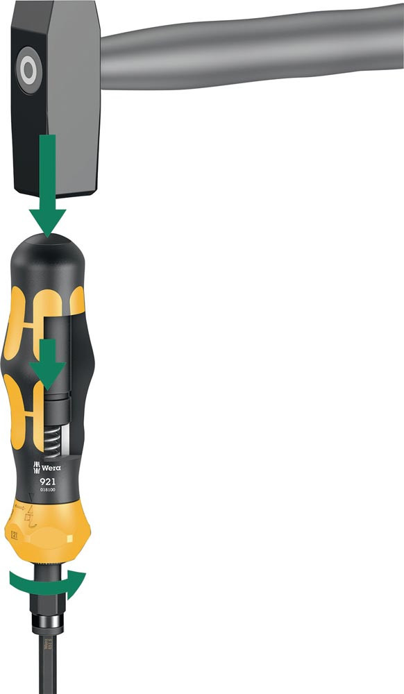 mit Wechselklingen und Handhalter mit Schlagkappe und zuschaltbarer Schlagschraubfunktion · vereint die Vorteile von manuellen Schlagschraubern, Kompaktwerkzeugen und Schraubendrehern mit durchgehender Klinge