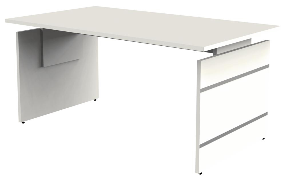 Schreibtisch, BxTxH 1600x800x680-760 mm, Wangen-Gestell weiß, Platte weiß, inkl. Kabelkanal E6019953