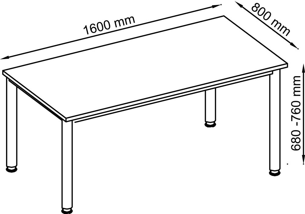 ∙ Platten 25 mm stark, beidseitig kunststoffbeschichtet, geprüft nach DIN 4554 ∙ Tischbeine aus Rundrohrstahl Ø 60 mm, höhenverstellbar , einbrennlackiert, weißaluminium ähnl. RAL 9006
