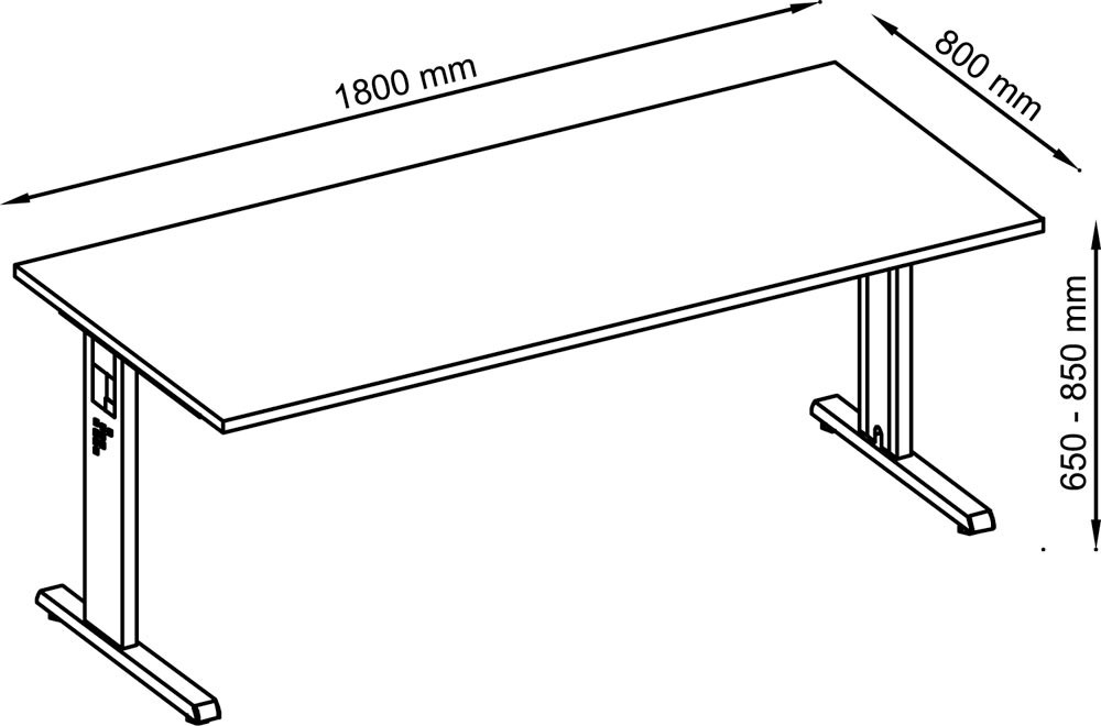 Schreibtisch, BxTxH 1800x800x650-850 mm, höhenverstellbar, C-Fuß-Gestell, Platte buche