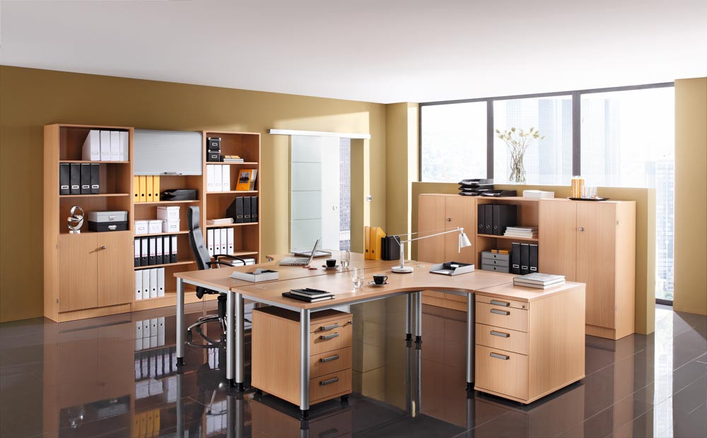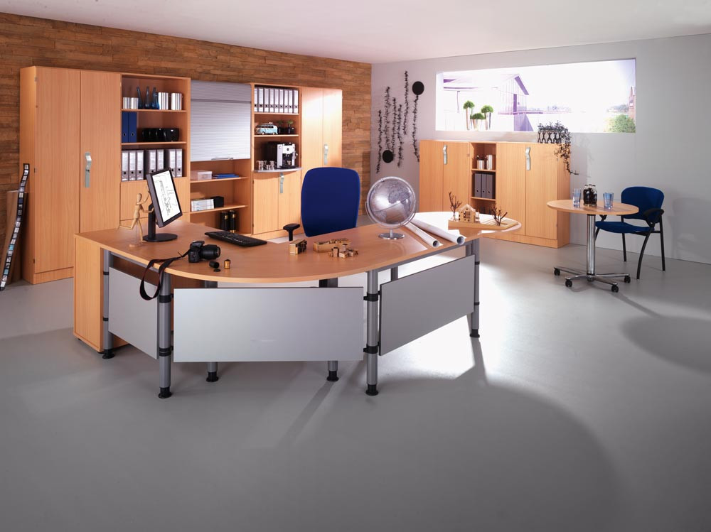 Schreibtisch, BxTxH 800x800x685-810 mm, höhenverstellbar, 4-Fuß-Gestell, Platten-/Gestellfarbe buche/silber E857261