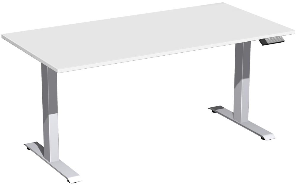 Schreibtisch, elektr. höhenverstellbar, BxTxH 1600x800x630-1280 mm, Melamin-Platte 25 mm, lichtgrau/silber E6488400