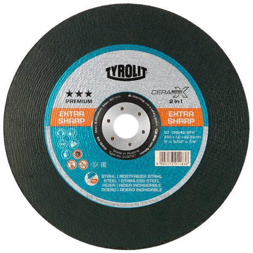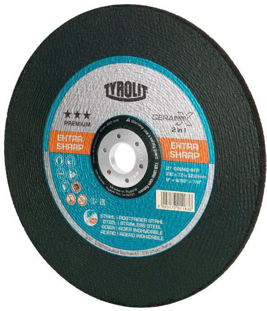Schruppscheibe CERABOND X D230xS7mmKörnung 24 27 E gekröpfte Schleifscheibe INOX/Stahl Bohrung 22,23 mm
