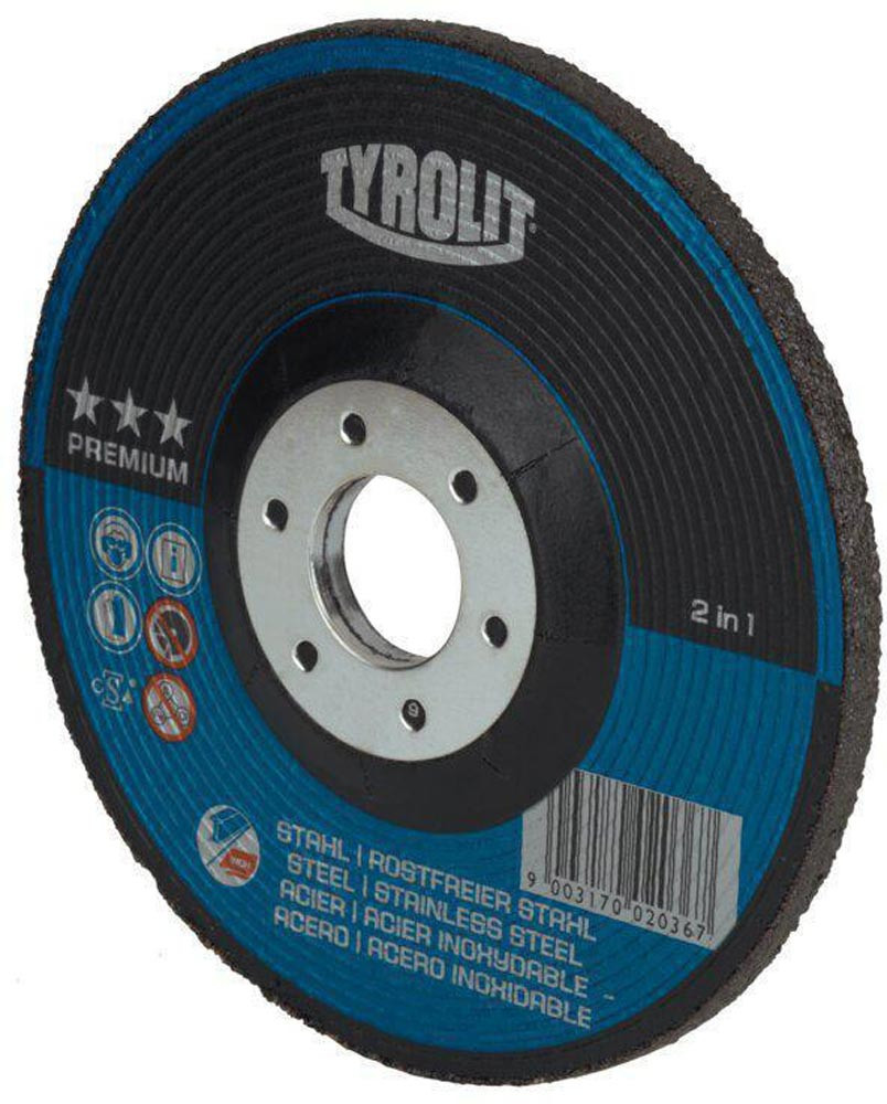 PREMIUM 2in1 Schruppscheibe für Stahl und Edelstahl · schnelles und komfortables Arbeiten ohne großen Kraftaufwand · abgeschrägte und definierte Kante des Werkzeugs · Bohrung 22,23 mm Ø