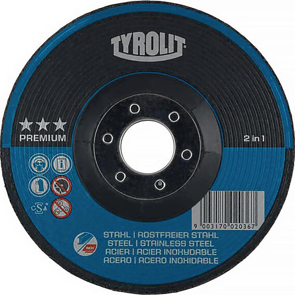 PREMIUM 2in1 Schruppscheibe für Stahl und Edelstahl · schnelles und komfortables Arbeiten ohne großen Kraftaufwand · abgeschrägte und definierte Kante des Werkzeugs · Bohrung 22,23 mm Ø