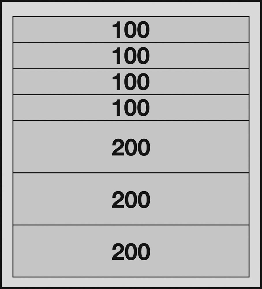 | Ausführung | 7 Schubladen: 4 x 100 mm, 3 x 200 mm |