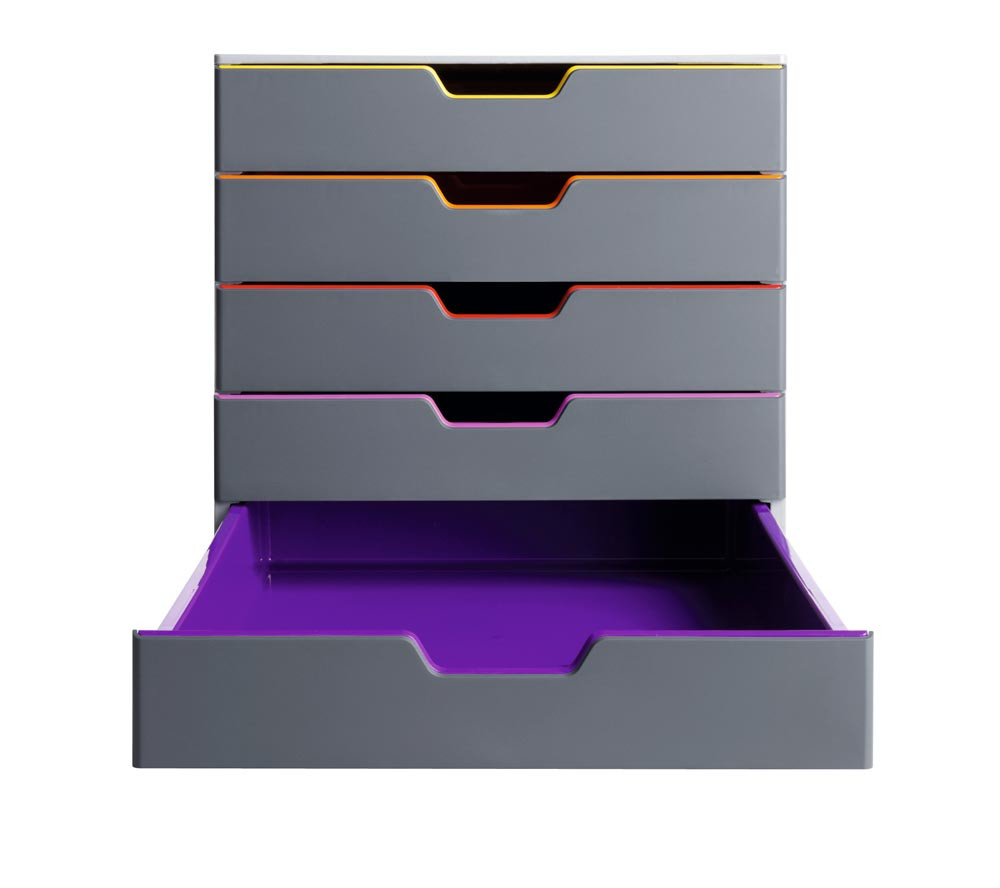 Schubladenbox, BxTxH 280x356x292 mm, 5 farbige Schubladen, aus ABS, inkl. Beschriftungsfenster E851432