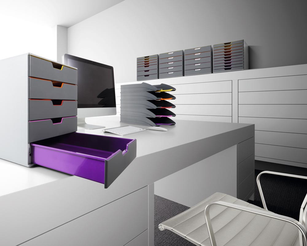 · Aus hochwertigem Kunststoff (ABS & PS) · Schubladen und Korpus in unterschiedlichen Farben · Für Formate DIN A4, C4 sowie Folio- und Letter-Size-Format · Geräuscharmer Schubladenleichtlauf mit Auszugssperre · Stapelbar · Rutschfeste Kunststofffüße · Inkl. transparenten Beschriftungsfenstern und computerbeschriftbaren, leicht auswechselbaren Einsteck-Etiketten