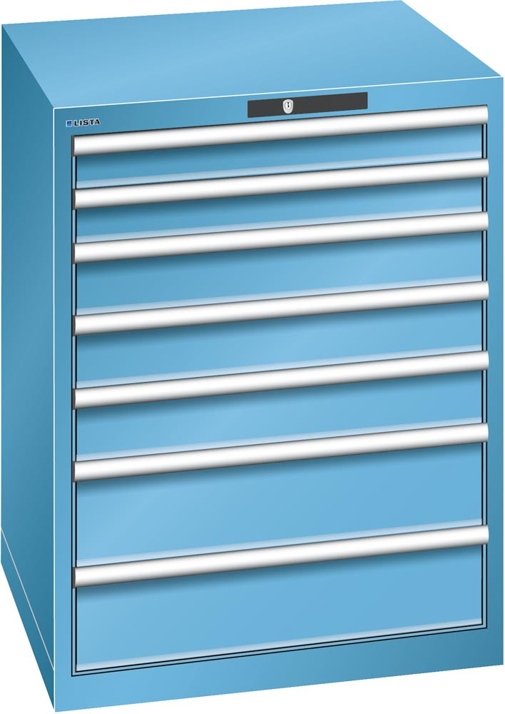 Schubladenschrank, Traglast/Schubl.: 75 kg, 7 Schubl.: 2x75, 3x100, 2x150 mm, RFID-Schloss, BxTxH 717x725x850 mm, RAL 5012 E6409520