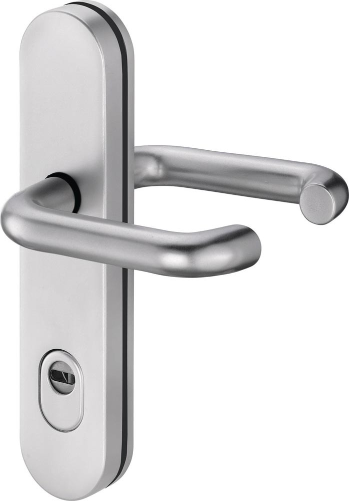 Grundkonstruktion: Druckguss mit 2 mm Teilstahleinlage im Außenschild, oberflächengehärtet · Stärke Innenschild = 8 mm · Drücker-Lagerung: lose · Drückertyp und -stärke: 103 mit Ø 22 mm, bzw. bei Alu 8 mm VKT = 104 mit Ø 18 mm · Knopfausführung bei Wechselgarnitur: Modell …/0272 und …/0292 = K2 (gekröpft), bzw. Modell …/0772 und …/0792 = K7 (gerade) · Stütznocken: M6, Ø 10 mm anbohrgeschützt · Verschraubung: 3-fach M6, verdeckt · Anbohrschutz beim Außenschild · Wechselgarnituren mit Spezialrollenwechselstift mit M12-Gewinde · mit Zylinderabdeckung: federnd gelagert für 12 - 17 mm Überstand · DIN links / rechts · Widerstandsklasse ES1