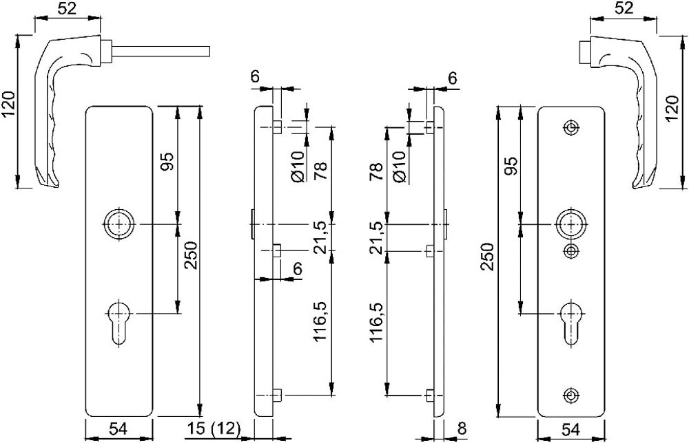 Drückergarnitur für Abschlusstüren · mit Teilstahleinlage als Anbohrschutz · Knopfschild-Randhöhe: 12 mm · mit 3-facher sichtbarer Verschraubung · mit Stahl-Nocken · Lochung PZ · DIN links / rechts · Widerstandsklasse ES 0