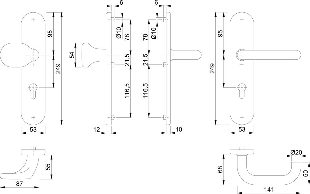 für Abschlusstüren · einbruchhemmend nach DIN 18257 · Stahl-Unterkonstruktion im Außen- und Innenschild · mit Rückholfeder-Paket · mit Schnellstift-Verbindung · hochfeste, verdeckte Verschraubung · Knopfschild-Randhöhe: 12 mm · Lochung PZ · DIN links und rechts verwendbar · einschließlich Befestigungsmaterial · Widerstandsklasse ES 1