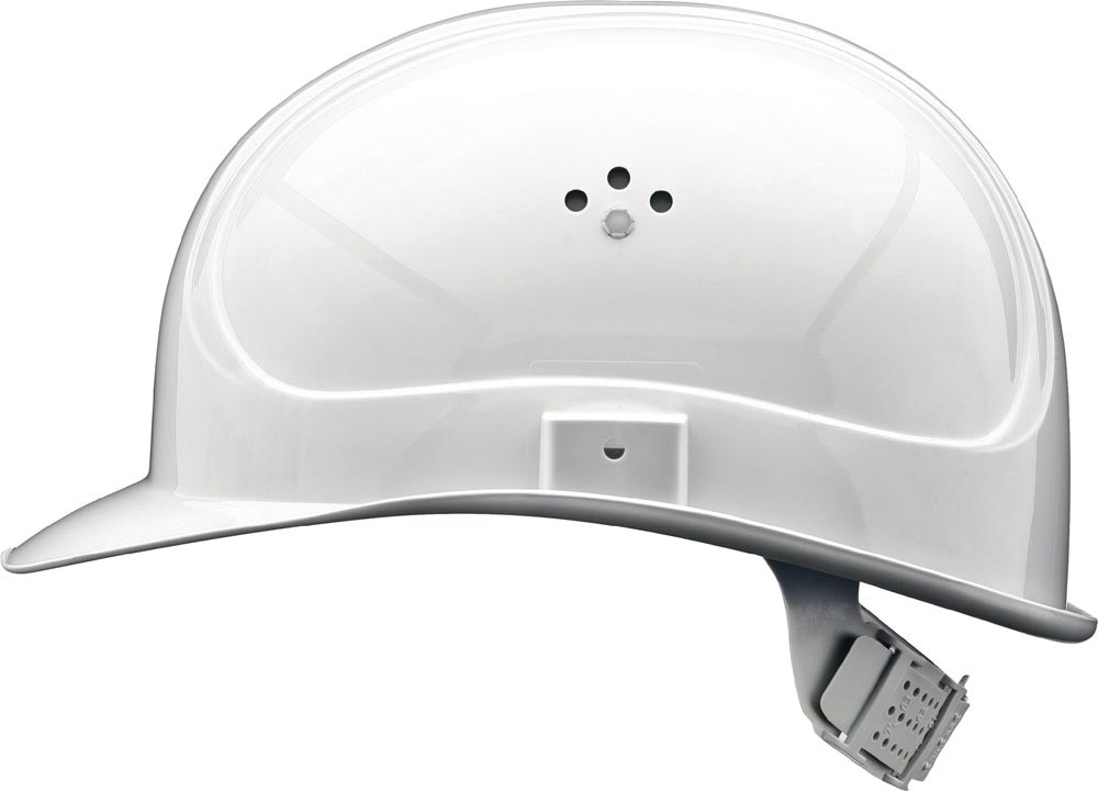 nach EN 397 · Zusatzprüfung Kälte (-30 °C) · aus Polyethylen · universelle Passform mit im Nacken heruntergezogener Helmschale · große Stirnfläche (bedruckbarer Bereich 6 x 4 cm) · seitliche Slots für Gehörschützer, 30 mm · Regenrinne · 6 Pkt.-Gurtband-Innenausstattung mit Kinnriemenhalterung und umlaufendem Schweißband · Kopfumfang 51-64 cm · Gewicht Helmschale ca. 255 g