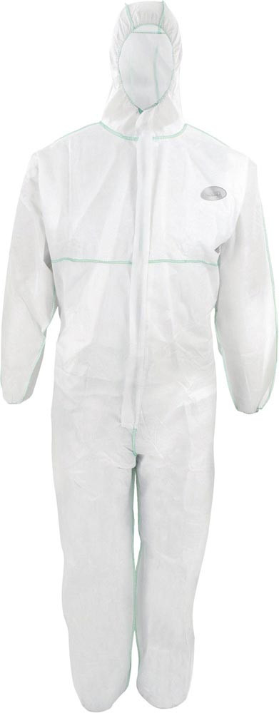 mit grünen Nähten · antistatisch · atmungsaktiv · dreiteilige Kapuze · Gummizug zur optimalen Anpassung der Kapuze · außenliegende Nähte · Schritteinlage (Zwickel) · Gummizug in der Taille · Gummizug an Arm- und Beinabschlüssen · Reißverschlussabdeckung · Anwendungsbereiche: Asbestsanierung, pharmazeutische Industrie, Umgang mit faserhaltigen Dämmstoffen (Glas- u. Steinwolle), Holz- u. Metallverarbeitung, Harzverarbeitung, Schutz vor mindergiftigen Chemikalien, Leicht Spritzer div. Reinigungsflüssigkeiten, Inspektions- u. Wartungsarbeiten von Maschinen u. Anlagen