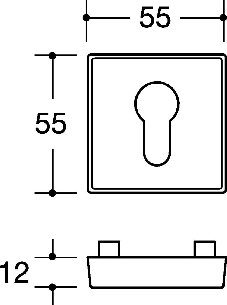 Außenrosette, massiv, quadratisch 55 x 55 mm, 12 mm stark