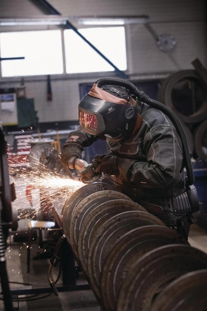 mit Adflo Gebläseatemschutzsystem · bietet in belastungsintensiven Umgebungen einen hocheffizienten Atemschutz im robusten und dennoch kompaktem Design · mit ergonomischer, einstellbarer Bebänderung · hochklappbares Schweißerschutzschild ermöglicht ein transparentes Schutzvisier mit weitem Sichtfeld für Schleif- und Einrichtarbeiten · Anwendung: Schweißerschutz, Schleifen, Metallindustrie, Metallreparatur