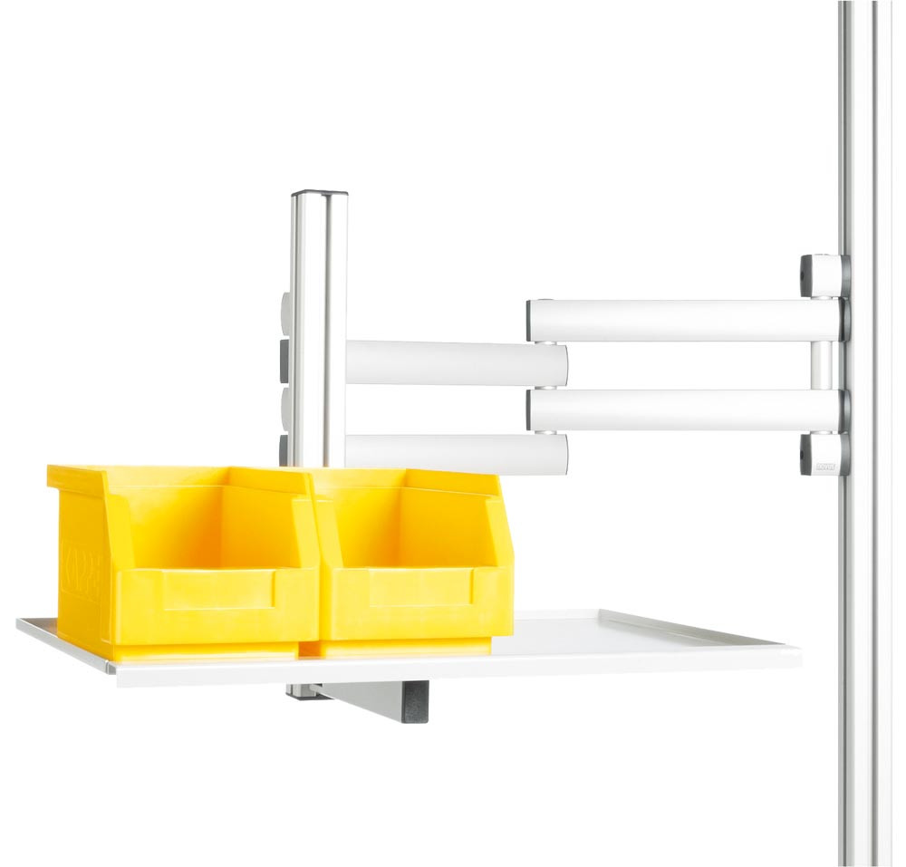 Schwenkarm zur Montage an Werkbankaufbau, mit 3 Gelenken und Tablar BxT 500x350 mm, Belastbarkeit bis 25 kg