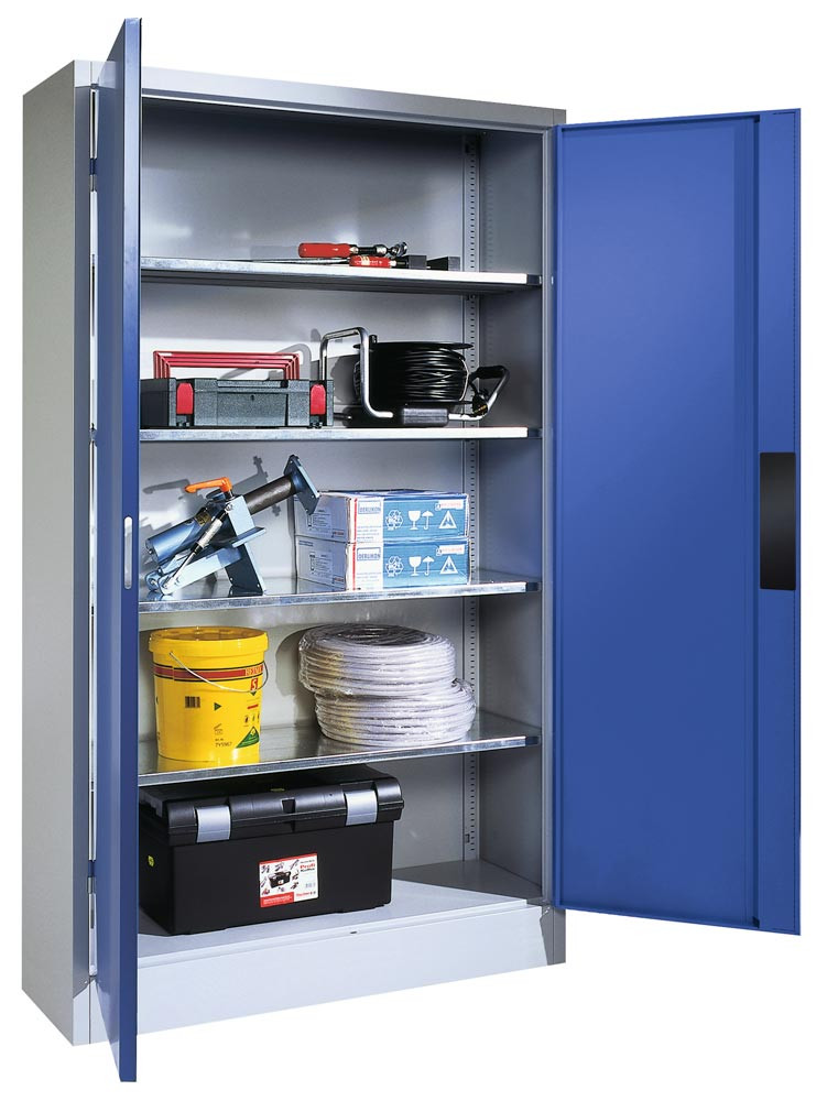 Schwerlastschrank, Flügeltüren, 4 Böden, BxTxH 500x400x1950 mm, RAL 7035/5010 E6041986