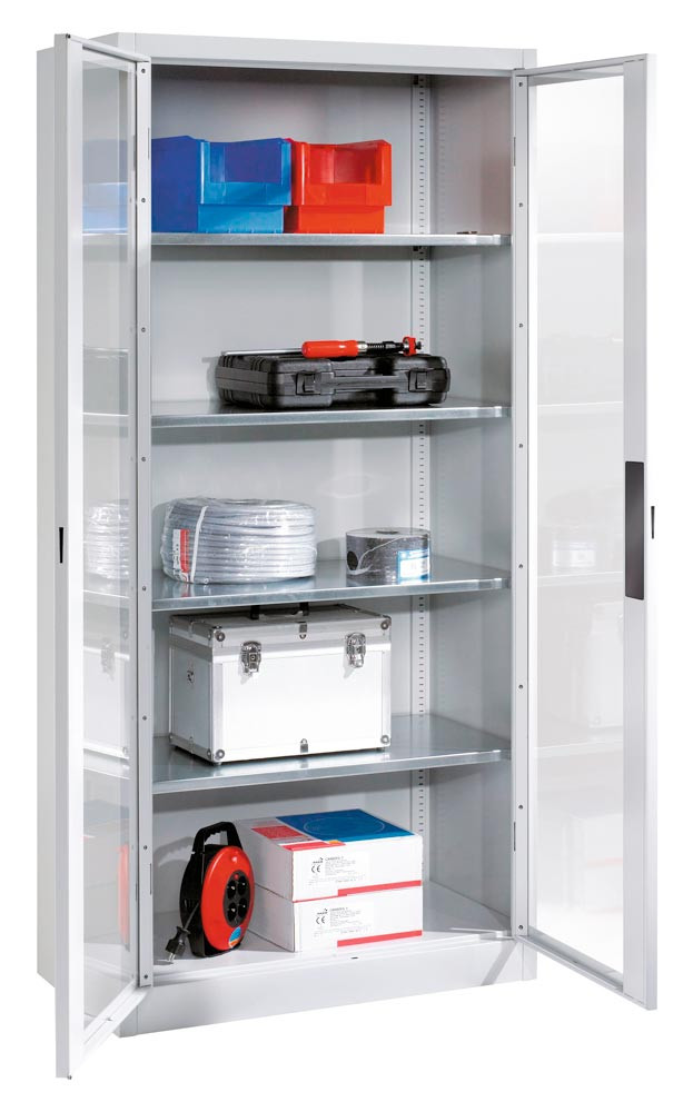Schwerlastschrank, Flügeltüren mit Sichtfenster , 4 Böden, BxTxH 930x500x1950 mm, RAL 7035 E6422207