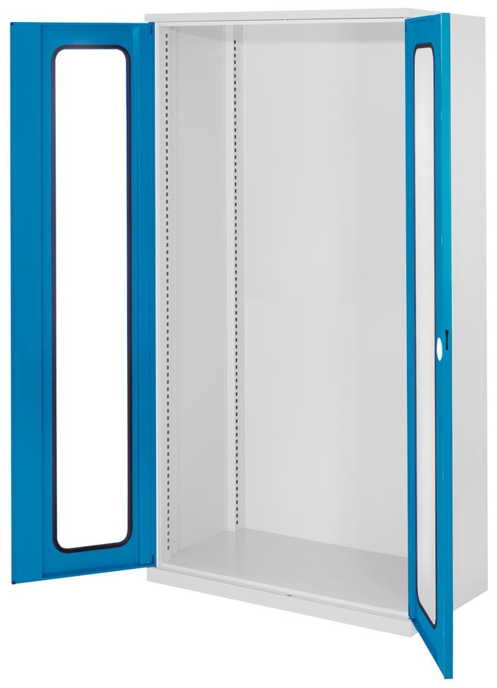Schwerlastschrank, Sichtfenstertüren, ohne Inneneinrichtung, BxTxH 1000x600x1950 mm, RAL 7035/5010