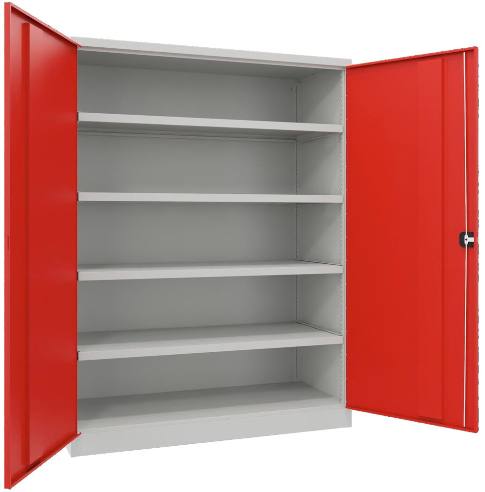 Schwerlastschrank, Vollblechtüren, 4 Böden, 200 kg Traglast, BxTxH 1470x 630x1950 mm, RAL 7035/3000