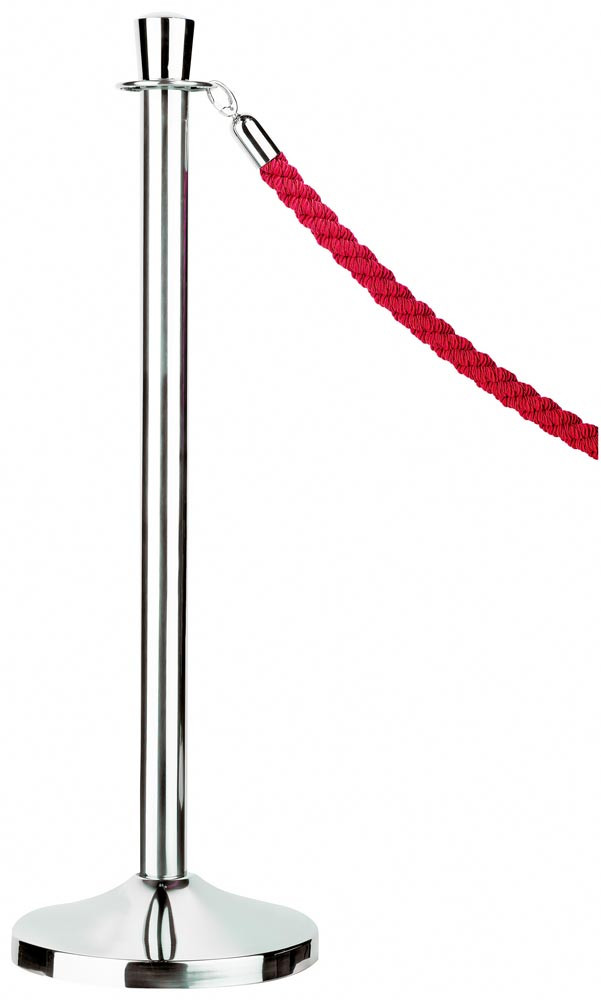 Seilständer, Ausf. Chrom mit roter Nylon-Kordel, Höhe 0,95 m, Fußdurchm. 0,32 m Gewicht 12,5 kg