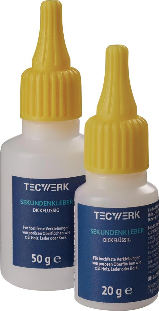 dickflüssiger Cyanacrylatkleber · hochviskos · für das Verkleben von stark porösen Flächen und Teilen die eine gewisse Spaltausfüllung benötigen · besonders geeignet für Holz und Leder, ebenfalls geeignet für Glas und Keramik · anwendbar in Elektrik- und Elektronikindustrie, Maschinenbau, Metallverarbeitung, Automobilbau, Kunststoffverarbeitung, Modellbau, Möbelindustrie u. v. a. · Viskosität: 1200 - 1500 mPas (20 °C) · Spaltfüllvermögen: 0,2 mm · handfest nach: Aluminium: 10-30 Sekunden, Gummi: 15-25 Sekunden · temperaturbeständig von -50 °C bis +80 °C