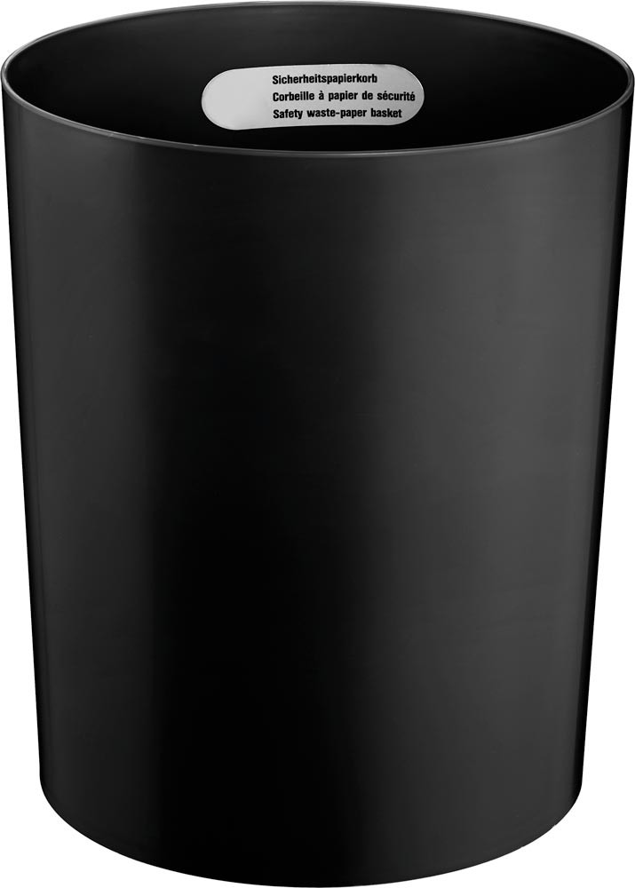 Sicherheits-Papierkorb, Kunststoff schwer entflammbar, Volumen 20 l, Durchm.xH 280x340 mm, schwarz, VE 5 Stück