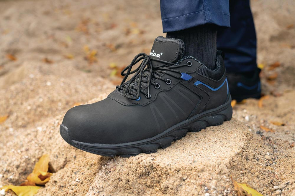 nach EN ISO 20345 · S3 SRC · Weite: 10,5 · Schaft aus Action-Nubukleder · angenähte, gepolsterte Staublasche aus Textilmaterial · ergonomisch geformter, gepolsterter Schaft aus Textilmaterial · Verschluss mit Kunststoff-Ösen und Textilschlaufen · herausnehmbares, anatomisches High-Poly Fußbett · atmungsaktives Innenfutter · Anziehhilfe an der Ferse · Fiberglaskappe und durchtrittsichere Gewebezwischensohle · antistatische, öl- und säurebeständige, rutschhemmende und super leichte EVA/Gummi-Laufsohle · sportliche Laufsohle · komplett metallfrei