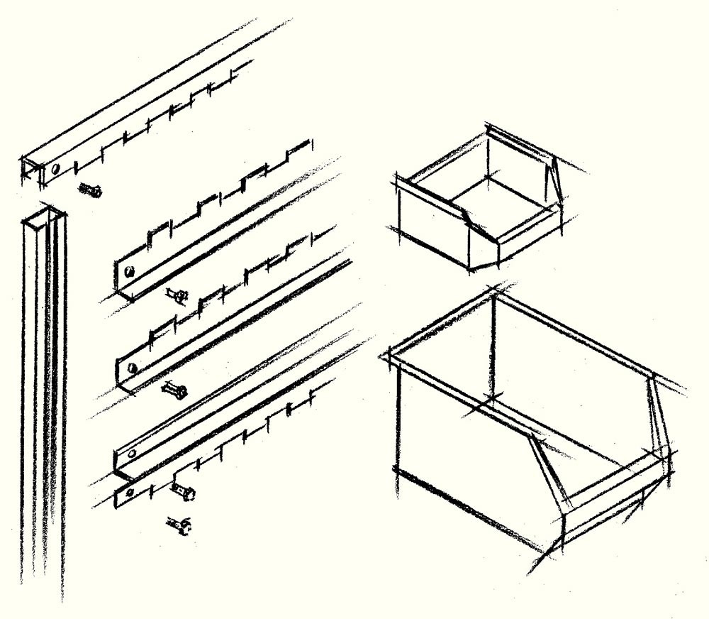 H 1000 x B 1010 mm · bestehend aus: vertikal zu montierenden lichtgrauen C-Profilen und verzinkten Aufhängeschienen zum Einhängen der Kästen · Lieferung erfolgt zerlegt inkl. Befestigungsmaterial