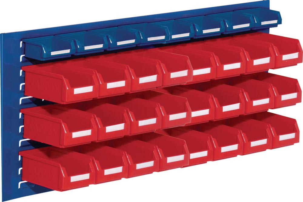 bestehend aus: Schlitzplatte, Stahlblech enzianblau, RAL 5010 und Lagersichtkästen, inkl. Etiketten