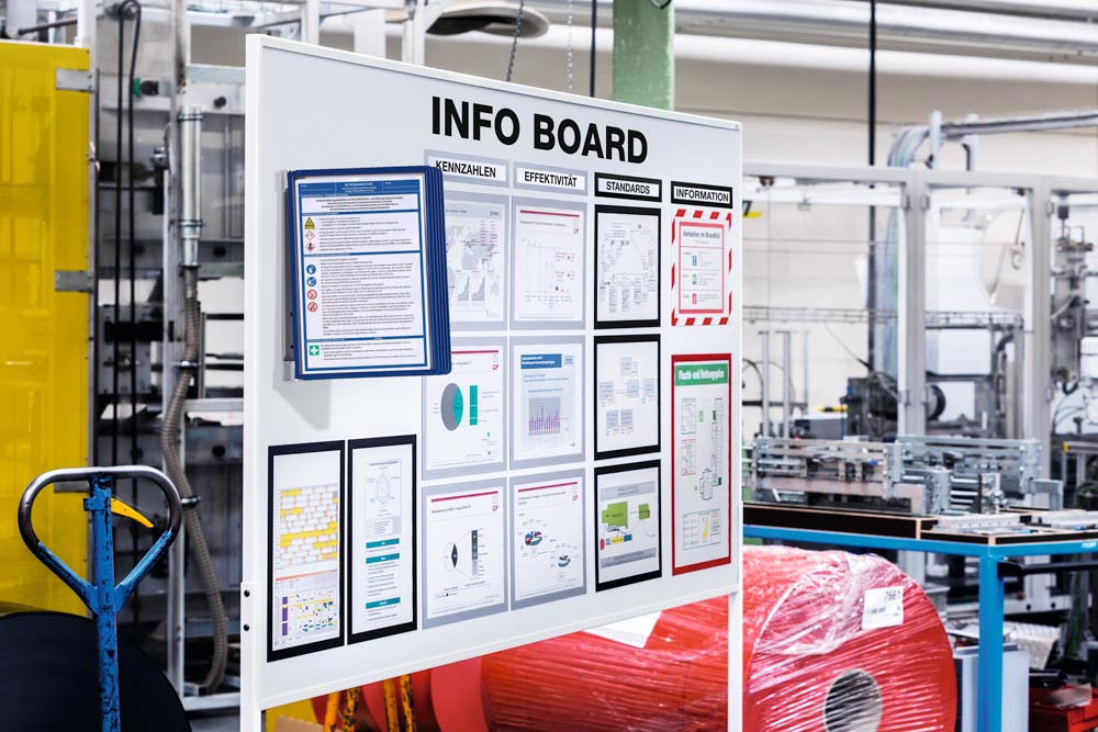 Komplett-Set · mit Profilrahmen · mit magnetischem Rücken · Metall-Wandhalter für die Befestigung an Maschinen · mit 5 Sichttafeln