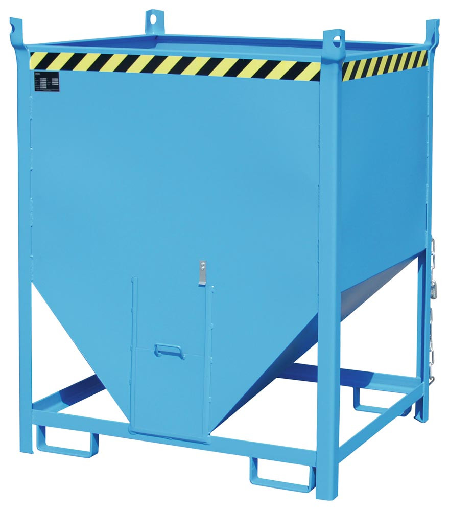 Silobehälter, LxBxH 1000x1200x1260 mm, Vol. 0,75 cbm, Traglast 1000 kg, stirnseitiger Schieberverschluss, lackiert RAL 5012 lichtblau