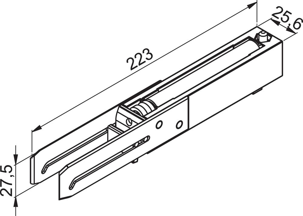 in der Laufschiene integrierter Einzugsdämpfer bis 140 kg Flügelgewicht · verwendbar mit Helm 140 Modul Konzept · Flügelbreite mind. 650 mm (einseitig) bzw. mind. 860 mm (beidseitig)