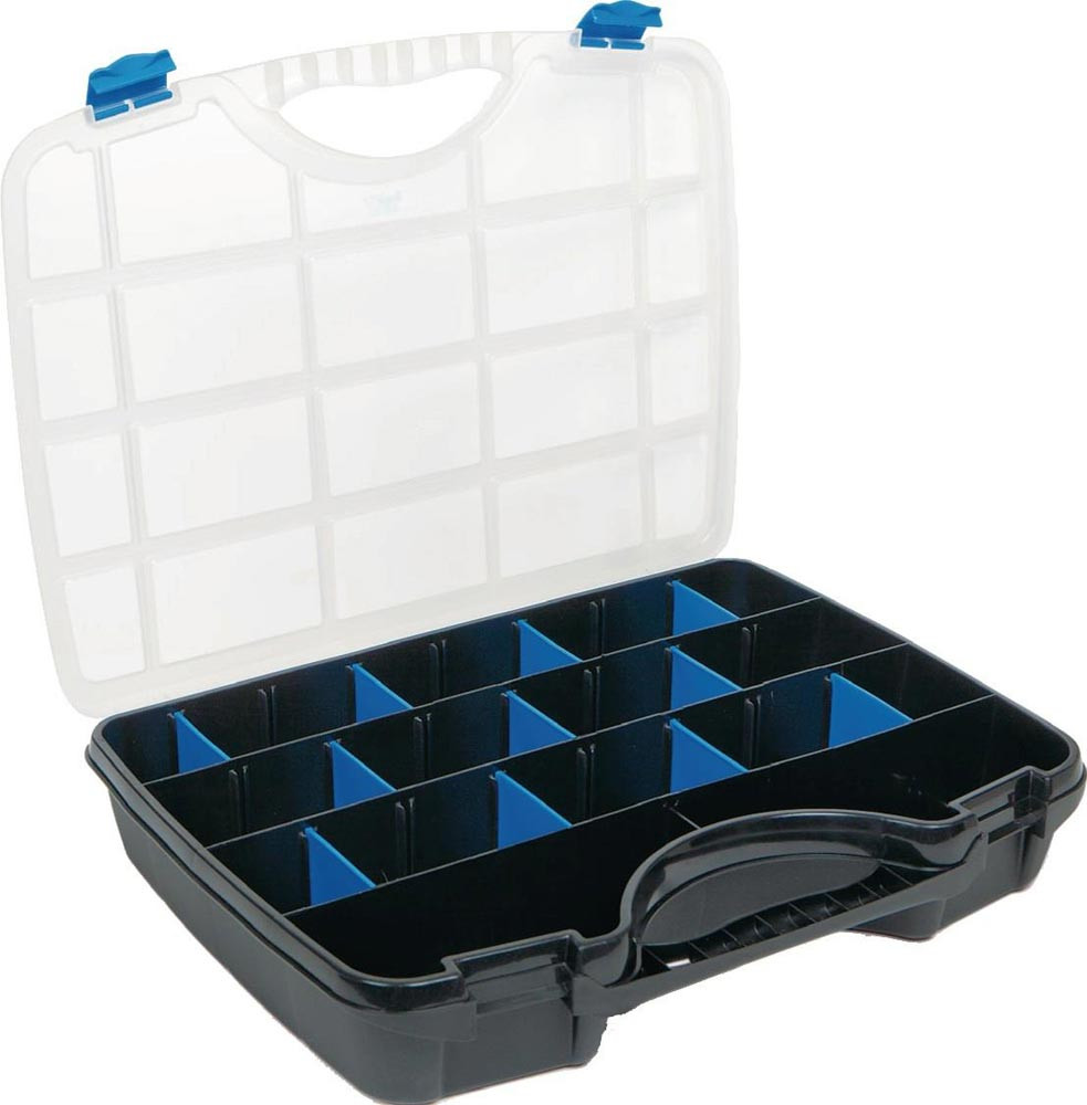 mit Tragegriff · 21 Fächer mit herausnehmbaren Unterteilungen · mit transparentem Deckel