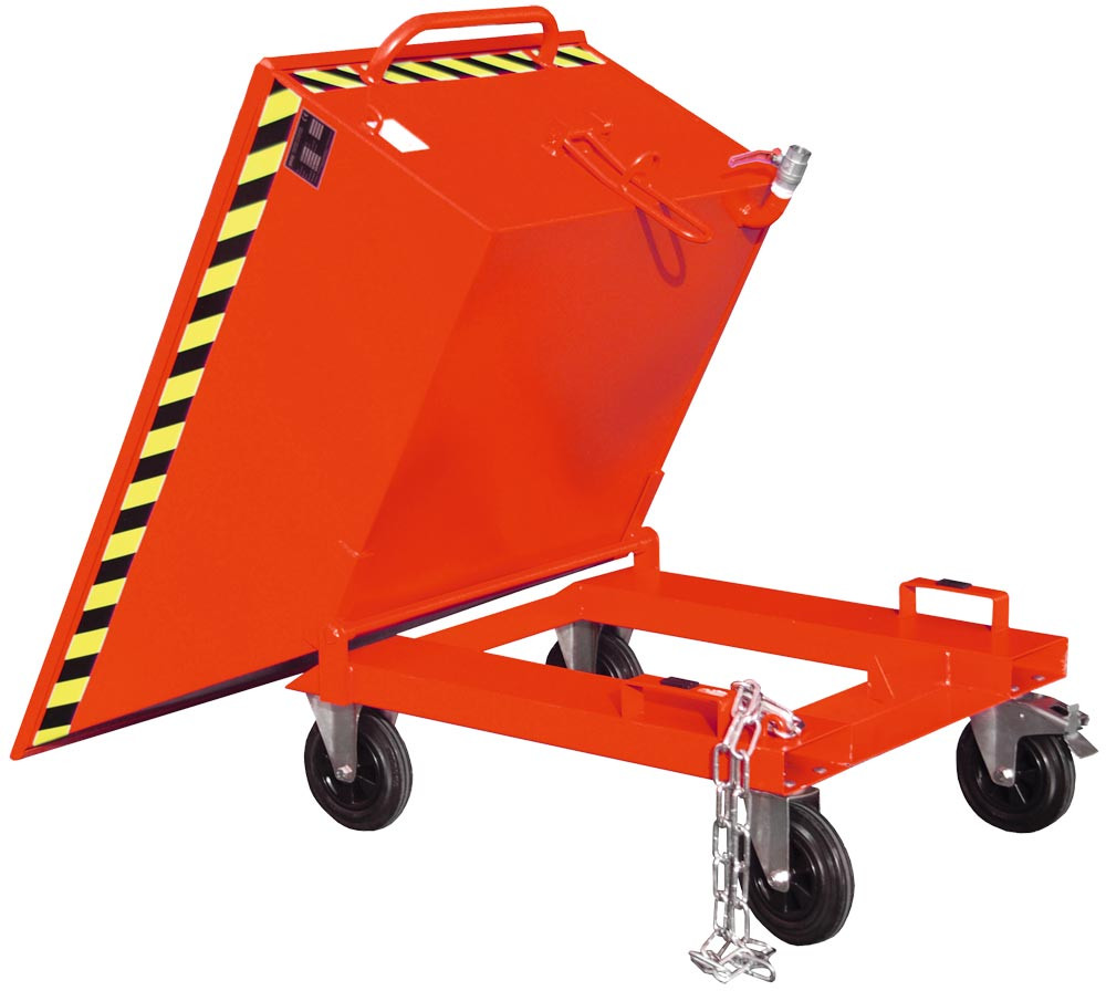 Späne-Kippmulde, Volumen 0,4 cbm, LxBxH 1430x840x605 mm, niedrige Mulde, lackiert RAL 3000 feuerrot E6422984