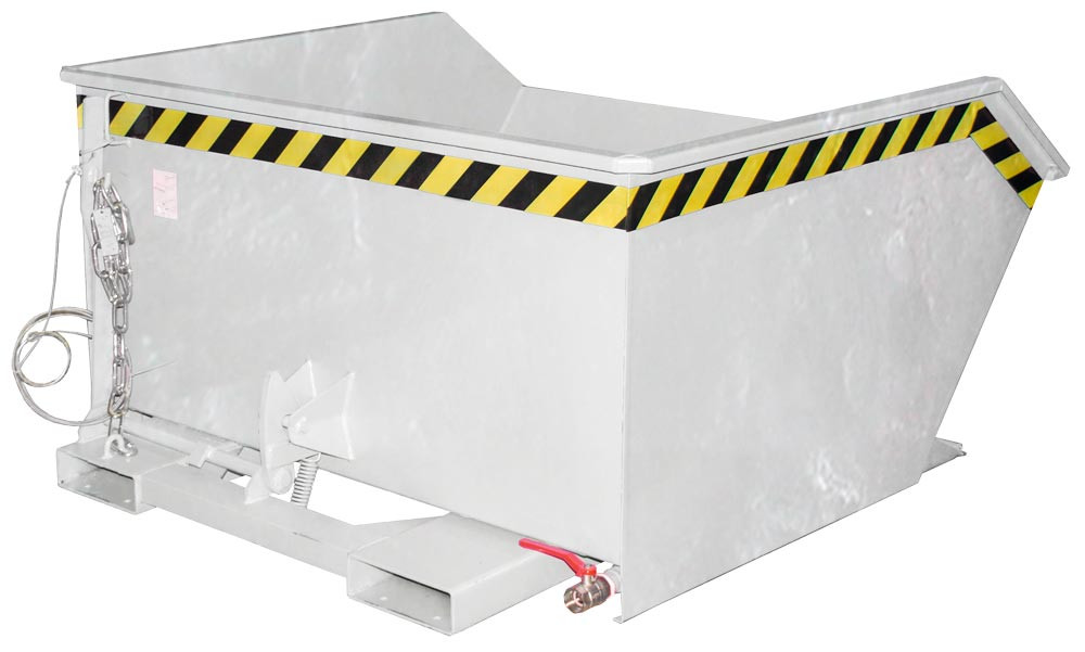 Späne-Mulden-Selbstkippbehälter, automatischer Aufrichter, Traglast 1000 kg, LxBxH 1440x780x680 mm, Vol. 0,50 cbm, feuerverzinkt
